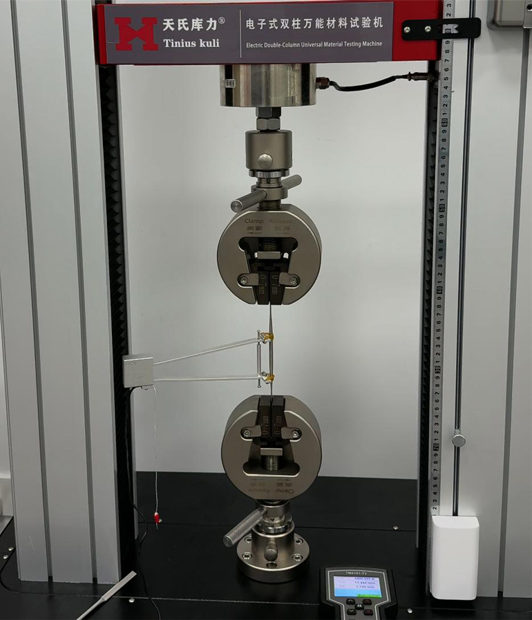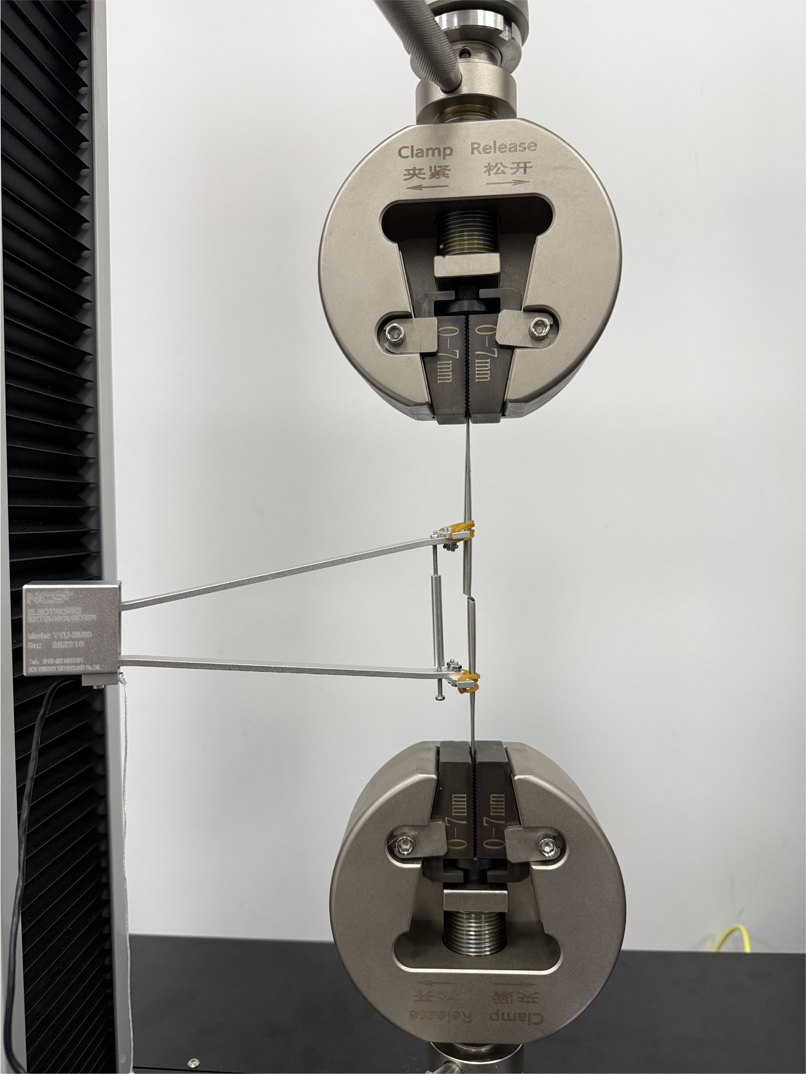 2、設(shè)備與裝夾:使用經(jīng)過(guò)校準(zhǔn)的萬(wàn)能材料試驗(yàn)機(jī)。將試樣兩端牢固地夾持在夾具中,并確保受力軸線與試樣中心線重合,避免引入附加彎矩。
