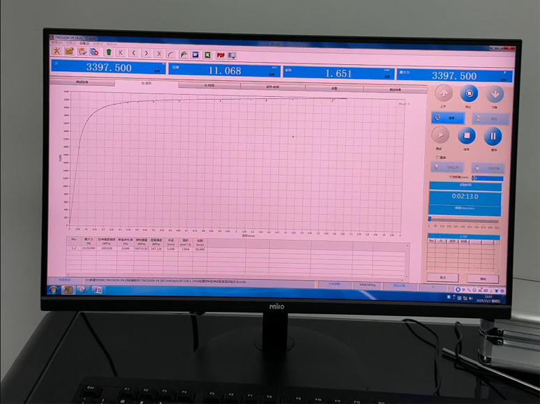 3、數(shù)據(jù)采集:在試樣平行段安裝高精度的引伸計(jì),以捕捉微小的彈性變形和屈服點(diǎn)。試驗(yàn)機(jī)以恒定速率施加拉伸載荷,自動(dòng)記錄并繪制出完整的“載荷-位移”或“應(yīng)力-應(yīng)變”曲線。